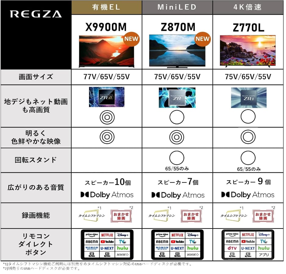 タイムシフトマシン搭載4K Mini LED液晶レグザ Z870M シリーズ
