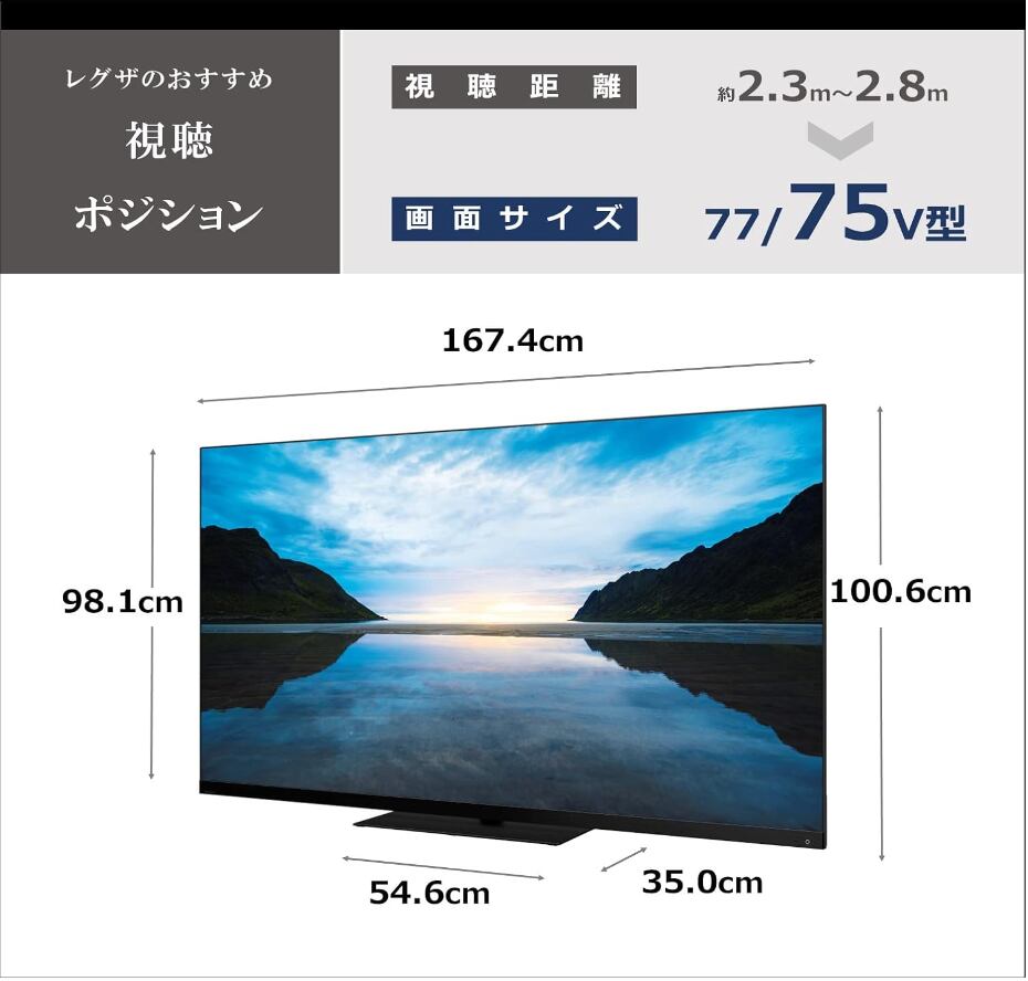 外形寸法(スタンド付き) 幅×高さ×奥行 167.4cm×100.6cm× 35.0cm